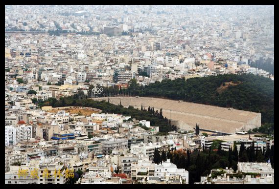 從山頂上俯瞰雅典,便可以看到當年的奧運運動場。雅典唯一直得讓人稱頌的,就是地鐵和台北的一樣很乾淨,這應該歸因於他們當年舉辦奧運。