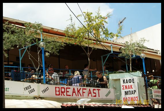 這家沒有屋頂的餐廳名字叫……嗯,Еλа,她雖然沒有海景可以欣賞,不過卻被八家旅遊手冊選為克里特島的推薦餐廳,這八家的旅行手冊包括了Lonely Planet, DK TOP 10,Marco Polo等等,這似乎是我第一次留意旅遊手冊上頭所推薦的餐廳。因為我喜歡嘗鮮,也因此我吃了從沒吃過的希臘菜Moussaka,中文似乎可以翻譯成為慕沙卡。好吃嗎?好不好吃其實是必須比較才能夠知道的,為了要證明當時吃得很好吃,我後來再另一個小島的小餐廳又點了一次Moussaka,沒錯,這家真的很好吃,因為我第二次吃到的那家,實在是太難吃了。