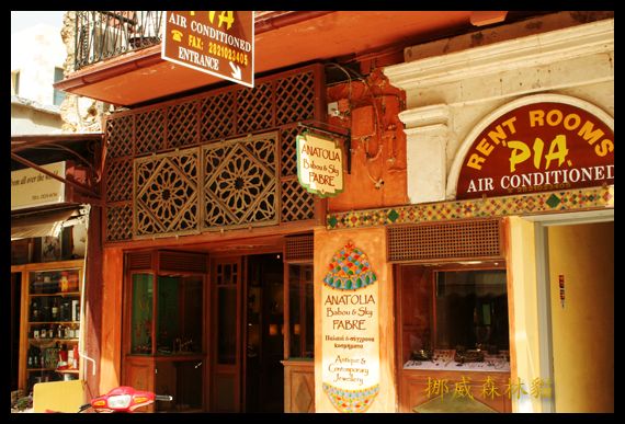 我這回訂的旅館除了距離「美麗的」港口不遠之外,同時她也位於當地的小市場裡面。也許你看到「市場」這個詞,心想,那不是又亂又吵?不,一點也不,這個小市場倒是很有義大利的風味,在DK出版的旅遊手冊TOP 10 Crete裡,還把這個小市場列為Crete裡的Top 1。這是無聊的我,回到家之後又跑去書店查的,當然當我走進這個可愛的小市場我已經知道,不用看旅遊手冊,也知道自己終於可以有個像樣的旅程了。
