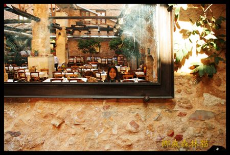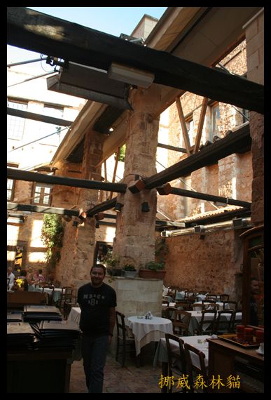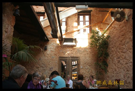 從餐廳的外頭往裡頭看,真的看不出裡頭原來是沒有屋頂的,真佩服他們的創意,把「廢墟」改造成這麼特別的餐廳。