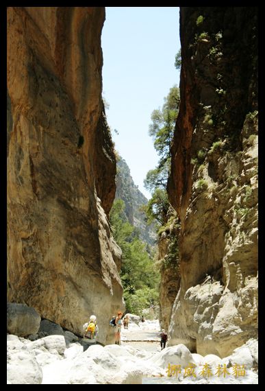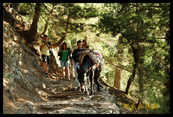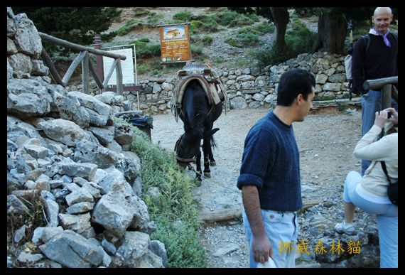 另一個讓大家料想不到的又來了,那就是Samaria縱谷的英雄,驢子。身旁的旅人笑著說:「計程車,計程車。」啊勒,來這種地方就是要自己走才有意思呀!騎驢子有甚麼好玩的,難道真的有這種人,寧願花錢騎驢子走下山嗎?我走著走著,越想越不對,最後忍不住跑去問驢子主人:「騎一次多少錢?」那名男子笑著回答:「不不不,這是緊急救護用的。」啊,果然不是計程車。咳咳,我要來稱讚希臘了,這可會是我第一次稱讚希臘,在維護旅客安全上,他們做得多好呀!我們台灣有那麼多山地,但就沒有這種救護的措施。