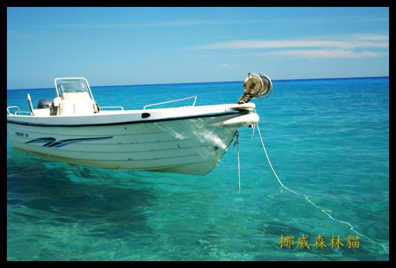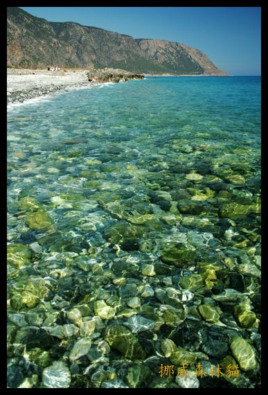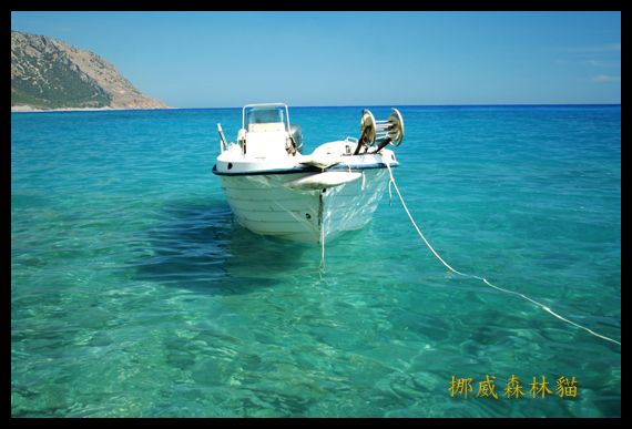 也許讀到了這裡,你想問我,不累嗎?不累耶!因為很有趣,尤其當我的身子仍舊在群山裡面,突然間映現在我眼前的是海水,那是奇特的海水。我無法形容那海水的顏色,不是Hania所見的深綠,也不是我們熟悉的深藍,它是清澈的純藍。我的腳步放快了,我忘了,之後的行程需要搭船,那自然也能見到海。導遊說過,再開船前想要游泳的人可以去游,這回我可是忘了把泳衣給穿上了。